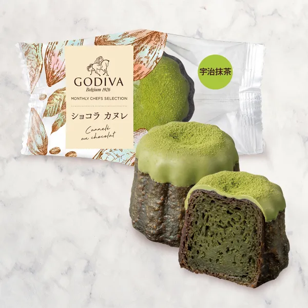 ベルギー産ホワイトチョコレートと宇治抹茶を使用したカヌレにチョコレートコーティングし、宇治抹茶をトッピングしました。