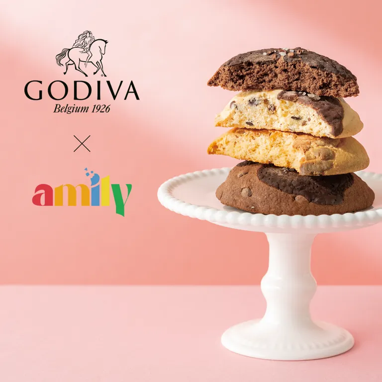 チョコレートを通して世界中の人々に記憶に残る幸せな時間を届けてきたゴディバと、「甘いクッキーで、笑顔や愛を届けたい」という願いから生まれたamily。