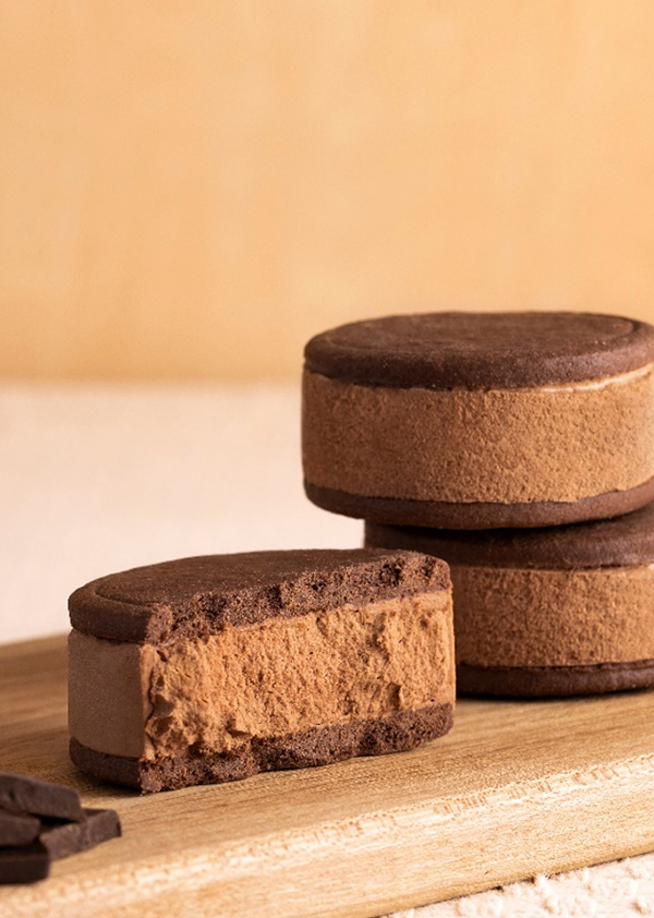 国産バターを丁寧にふんわりとホイップし、カカオ分58%のなめらかで軽く、洗練されたクーベルチュールを合わせる事で、とても味わい深いチョコレートクリームに仕上げました。口溶けの良いバターサンドは、冷凍状態のままでも食べていただけるほどなめらかです。ココアクッキーのザクザク感と、やわらかくなめらかなクリームのハーモニーをお楽しみください。