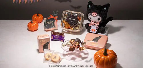 2025年ゴディバのハロウィンに黒ネコがやってきた!期間限定のチョコレートの詰め合わせや、黒ネコに扮したクロミのぬいぐるみとチョコレートのセットなどが登場します。