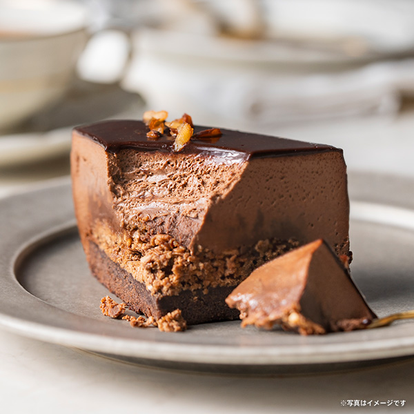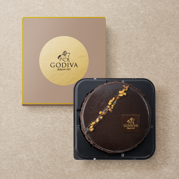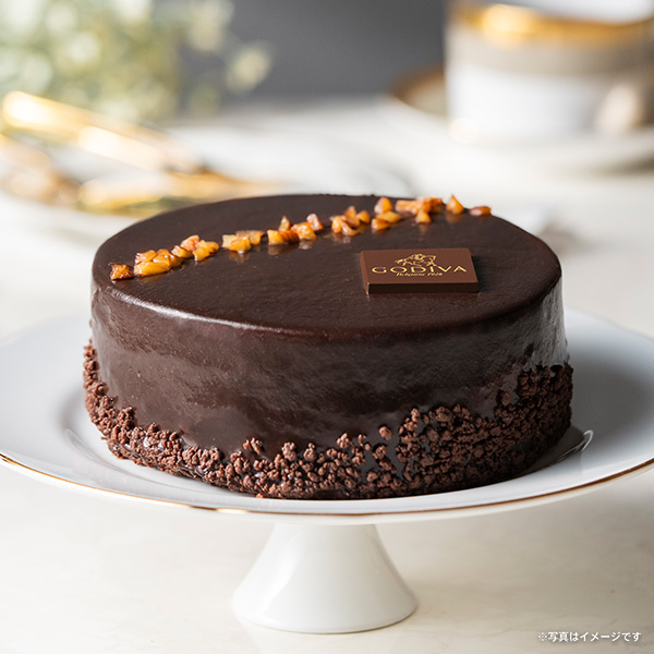 ベルギーのショコラティエ、ゴディバのシェフがチョコレートを使用した様々な食感、味わいのパーツを組み合わせて作り出した、バラエティ豊かなホールケーキ。ビスキュイ、クルスティアン、ガナッシュ、ムースが織りなす豊かなチョコレートの風味と心地よい食感。