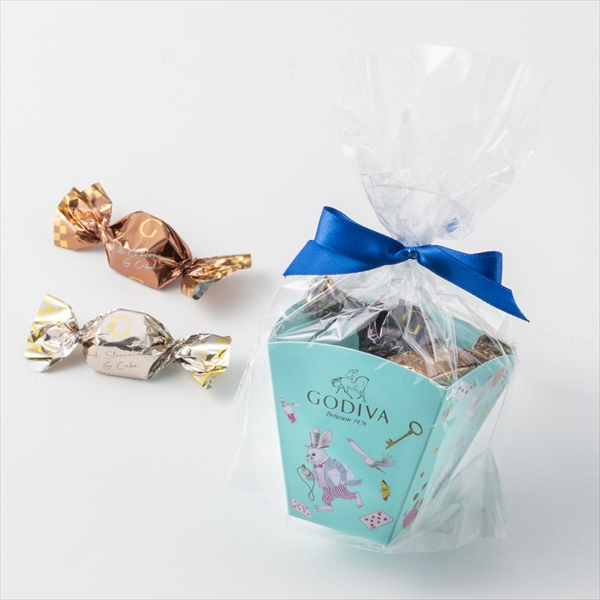 物語のシンボルのトランプやティーセットなどを描いた、小さなブーケのような可愛らしいパッケージに、ミルク、ダーク、2026年バレンタインより新登場のダーク ストラッチャテッラのG キューブ チョコレートを詰め合わせました。