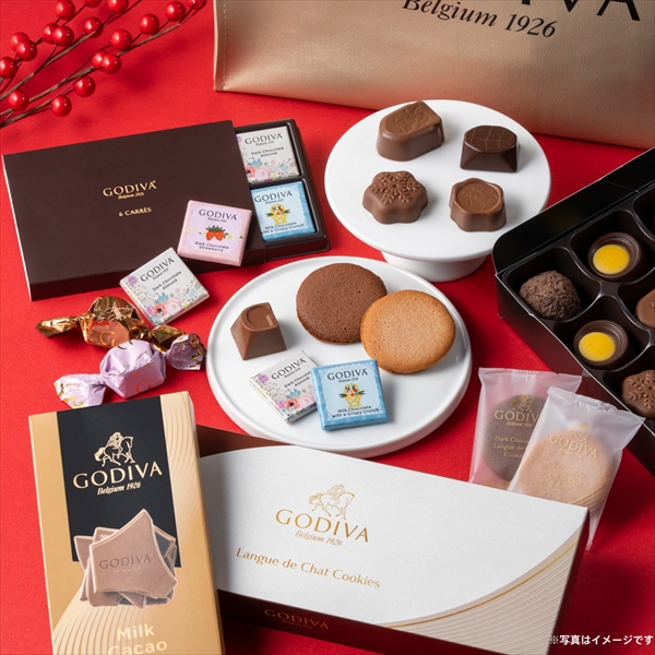 実りある豊かな年になることを願って、2026年のゴディバのニューイヤーハッピーバッグは、バリエーション豊かな5種類の商品を、マットゴールドの華やかなオリジナルバッグに詰め合わせました。オンラインショップでお使いいただけるクーポン付き。